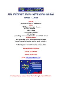 The end of 2025 was very busy at SWRCC Tennis Club with the finals of the South West Rocks Round Robins, Rally and Stroke Competitions and the 2025 SWRCC Tennis Club Championships.